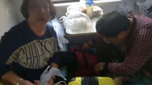 这时那老两口开始向列车长否认自己曾经说过不让放东西的言论,过道内一直坐着沉默不语的那位身穿红色毛衣的女乘客看不下去了,她怀里抱着小孩看得出来她本来是不想掺合进这件事情来的,就算开始两位老人就将她的行李箱拿了出来,她也选择了默不作声的接受了。
